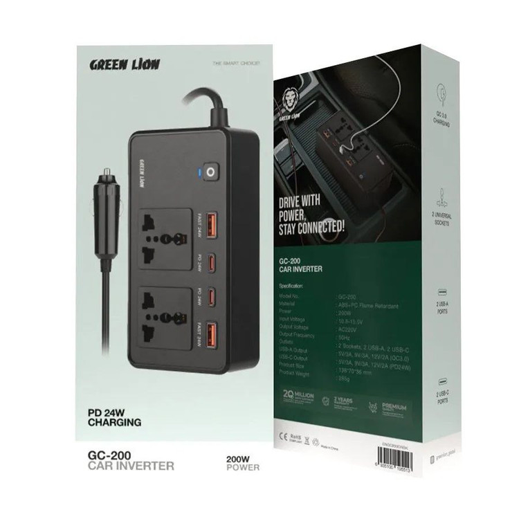 اینورتر 200 وات گرین لاین برق 12 ولت فندکی ماشین رو به برق 220 ولت AC تبدیل میکنه و همچنین با پورتهای متعدد USB، دستگاههات رو بهراحتی شارژ میکنه. همهی این امکانات در یک بدنه مقاوم، سبک و ضد شعله!