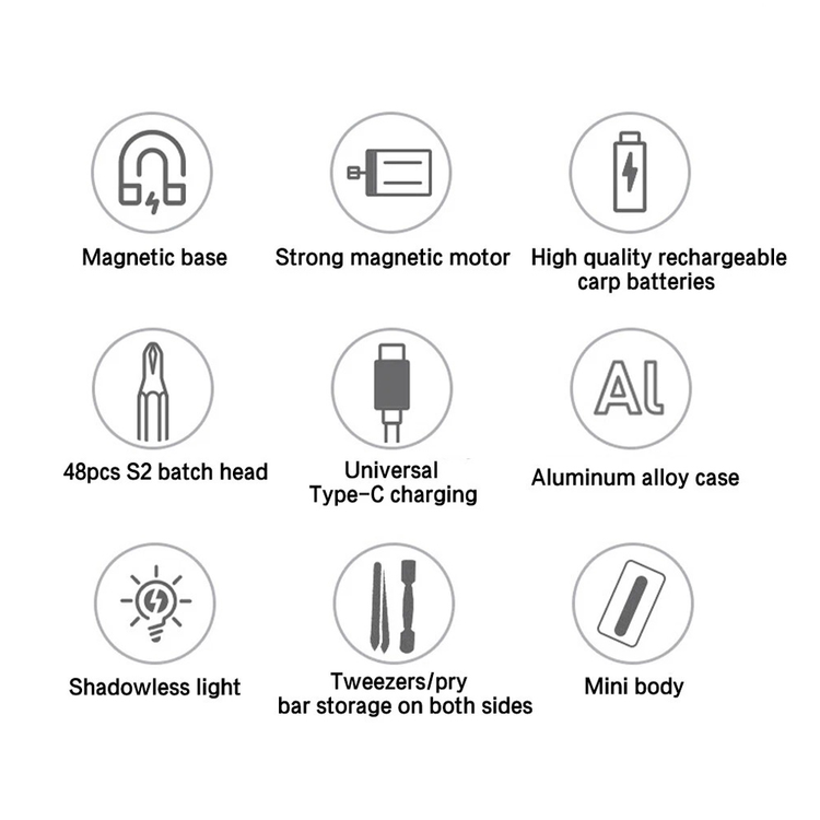 ست پیچگوشتی شارژی یک ابزار حرفهای و در عین حال کاملاً مناسب کارهای خانگی است که با بدنه آلومینیومی سبک و خوشدست، استفاده طولانیمدت را بدون خستگی امکانپذیر میکند. موتور پرقدرت با گشتاور بالا در کنار ست 48 سری دقیق، آن را برای تعمیر موبایل، لپتاپ، گجتها و انواع کارهای ظریف ایدهآل کرده است.