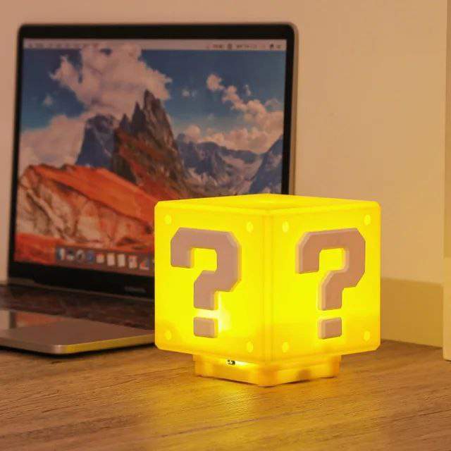 با این چراغ خواب باکس ماریو خاطره بچگیتو روشن کن! طراحیشده به شکل جعبه معروف بازی سوپر ماریو، با صدای واقعی سکه و ماریو 😍