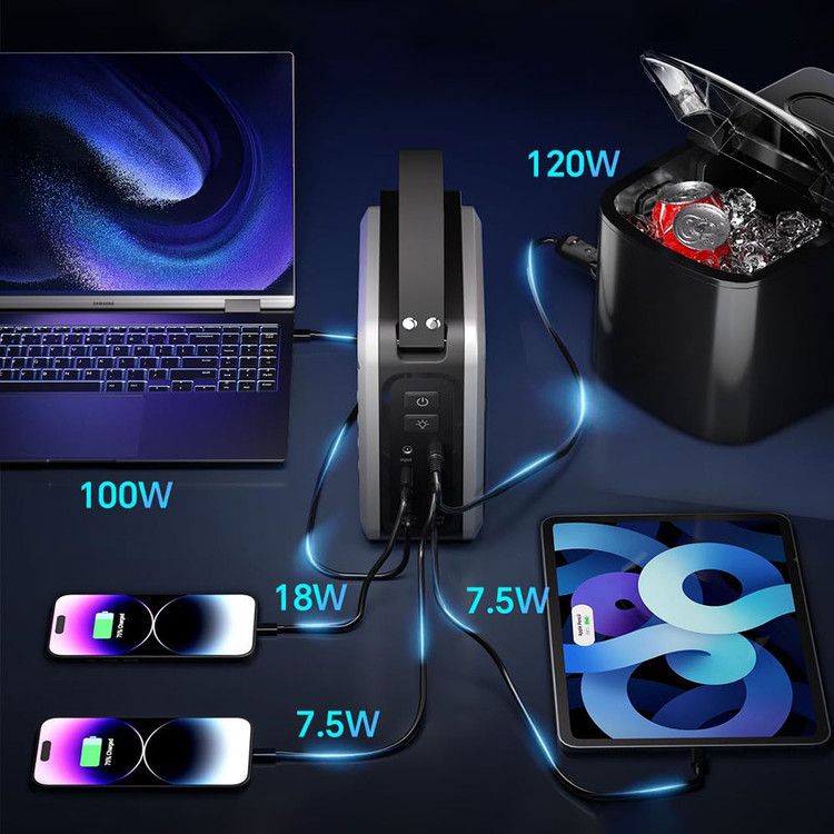 در قلب این پاور استیشن، یک باتری لیتیوم-پلیمری با ظرفیت بسیار بالا معادل 72000 میلیآمپر ساعت یا مقدار تقریبی 270 واتساعت قرار دارد. این مقدار انرژی میتواند به راحتی: