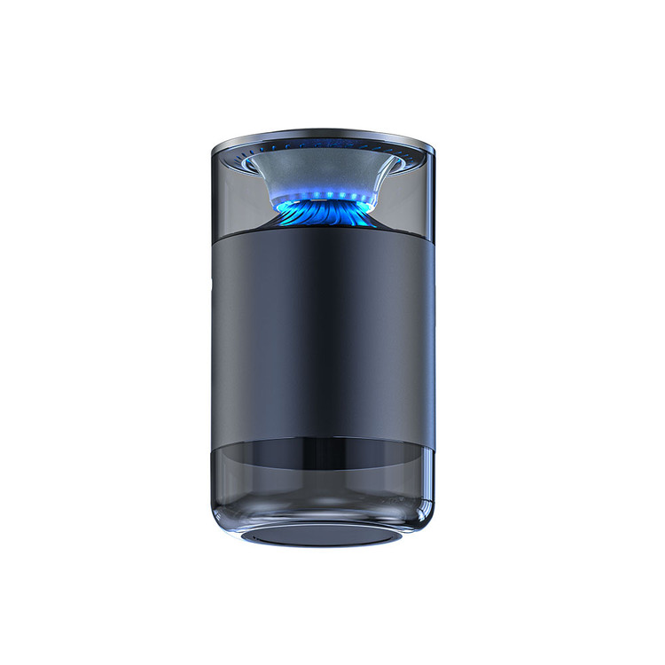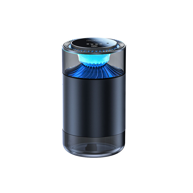 خوشبوکننده P1 با طراحی استوانهای جذاب، بدنهای مشکی-متالیک و نورپردازی LED آبی، بهراحتی با دکور داخلی خودرو یا محیط خانه و محل کار هماهنگ میشود. اندازه جمعوجور آن باعث میشود بتوانید بهراحتی آن را روی داشبورد خودرو، میز کار یا کنار تخت قرار دهید.