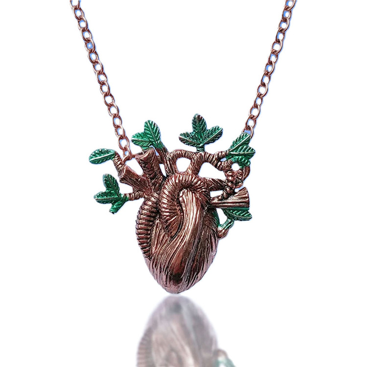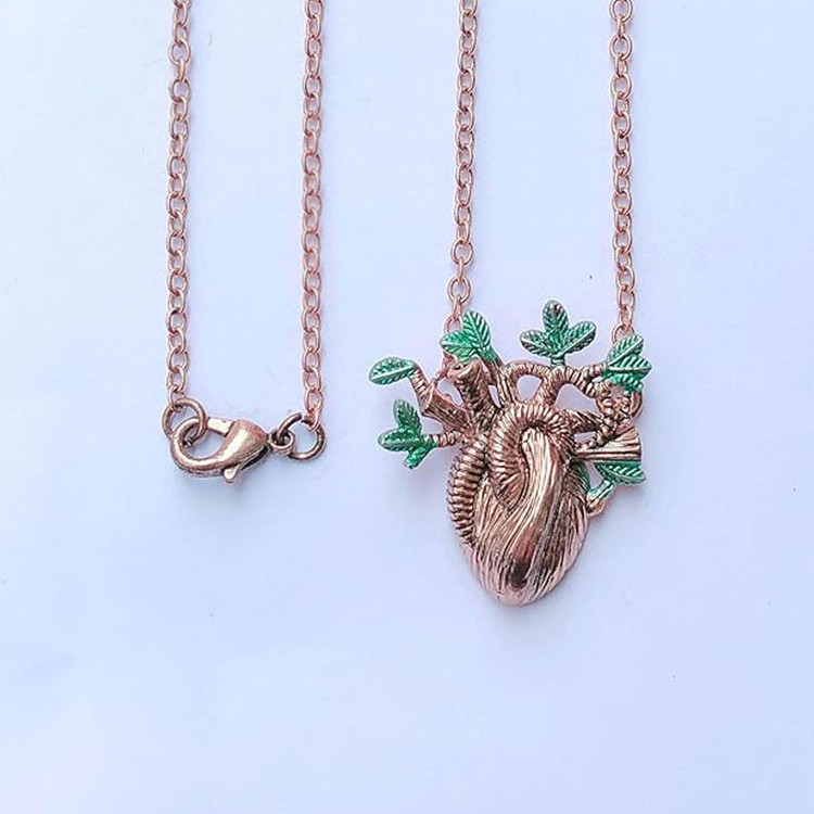 گردنبند قلب مدل آناتومی یک گردنبند خاص و متفاوت، مناسب برای خانمها است. این گردنبند با رنگ برنزی از فلز ساخته شده است و دوام بالایی دارد. طراحی پلاک از آناتومی قلب و طبیعت الهام گرفته شده است. جوانه زدن برگها از داخل قلب میتواند دارای معنای نهفته و نماد شروع دوباره احساسات باشد.